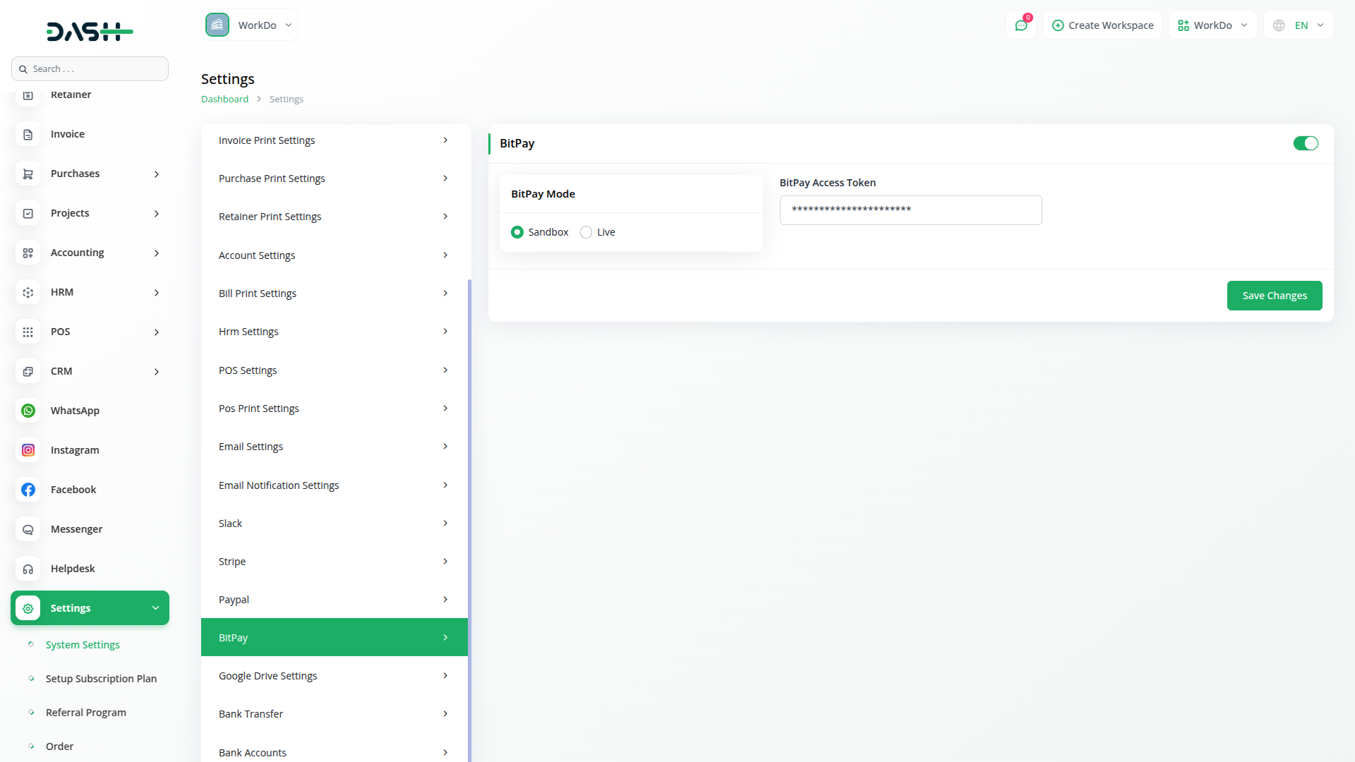 The API Key Settings Page for BitPay Integration allows you to securely connect your application or website with the BitPay payment gateway. By configuring your API keys on this page, you enable your platform to interact with BitPay services, providing seamless payment processing and transaction management.