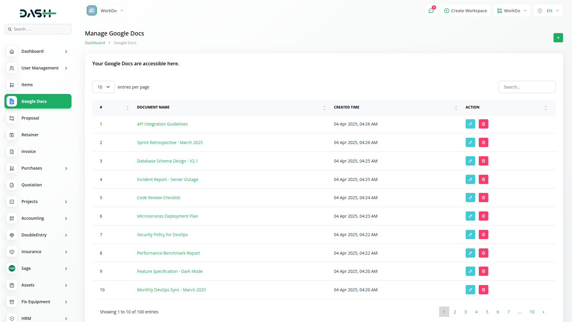 Connect your Google account to seamlessly manage documents within the platform. Create, edit, and delete Google Docs without switching tabs or leaving your workspace. Enjoy real-time syncing, simplified workflows, and centralized access to all your documents.