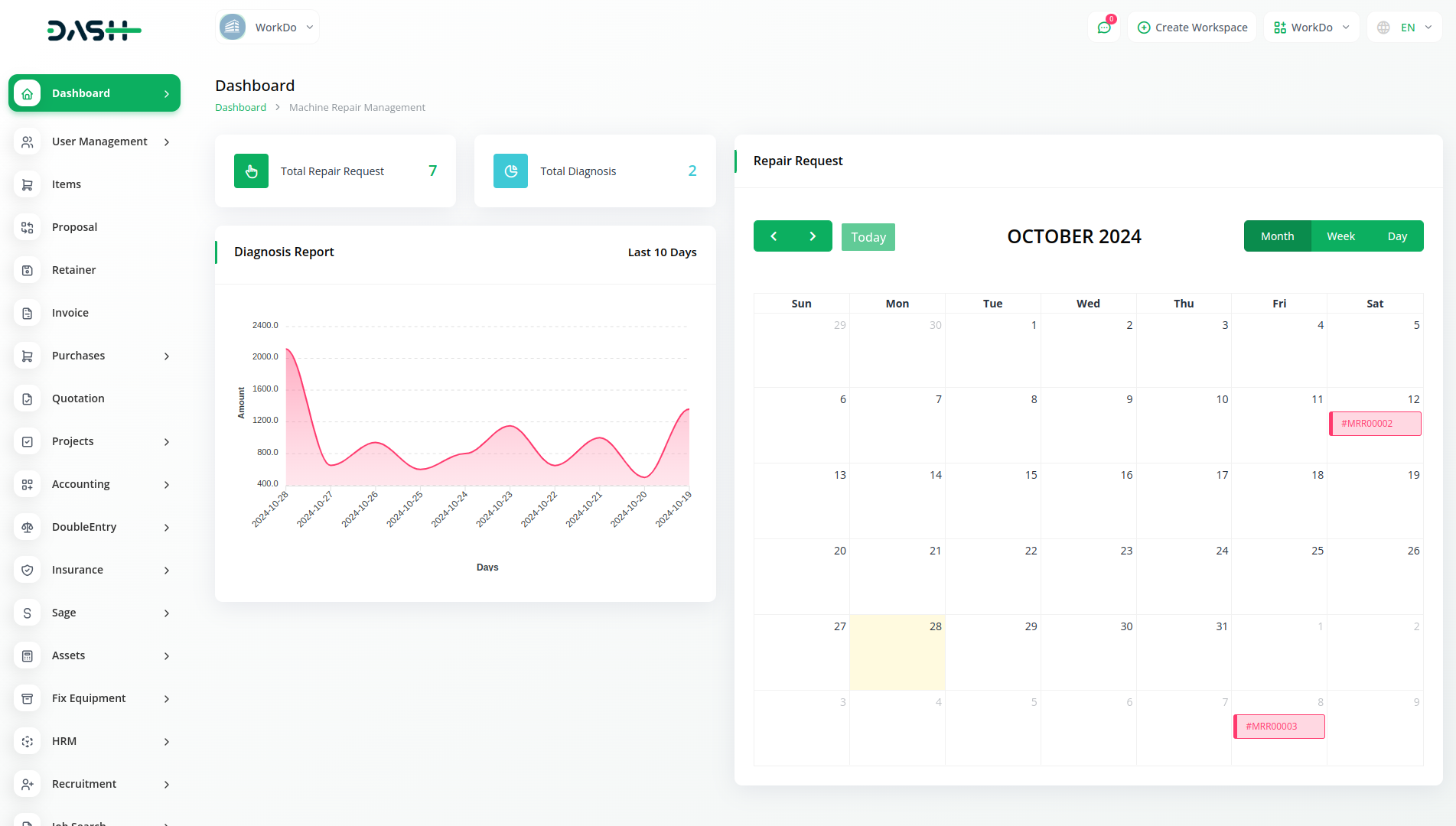 The Machine Repair Management Integration dashboard provides a comprehensive solution for overseeing machine repair processes efficiently. It offers a detailed overview of repair schedules, invoice details, and maintenance reports, facilitating streamlined management of machine maintenance.