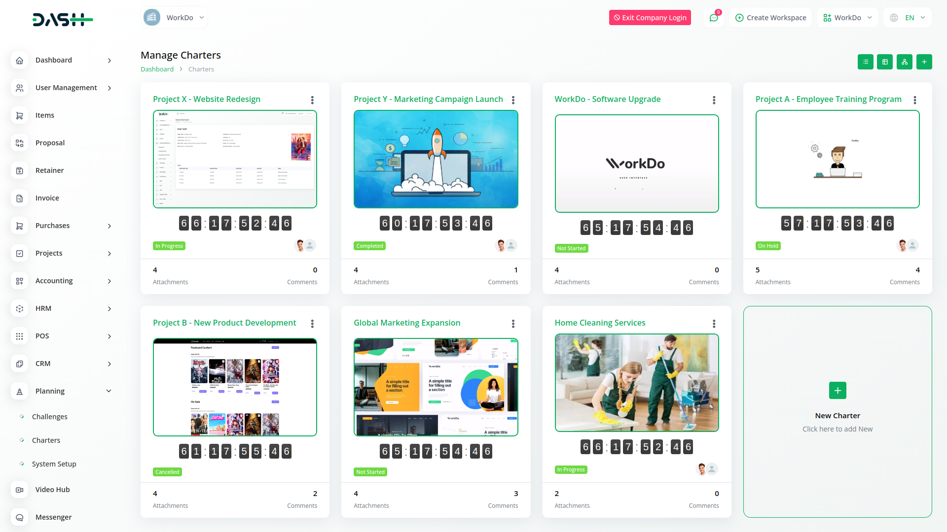 Numerish Planning Module streamlines project management with comprehensive Challenge and Charter functionalities. Challenges provide a structured framework for project goals and timelines, while Charters define the specific roles, responsibilities, and tasks.