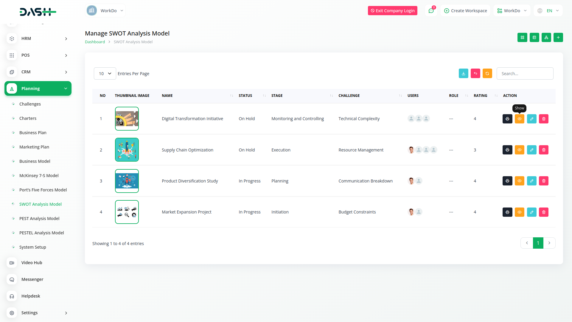 The SWOT Analysis Module features an intuitive interface that simplifies the process of conducting thorough analyses.