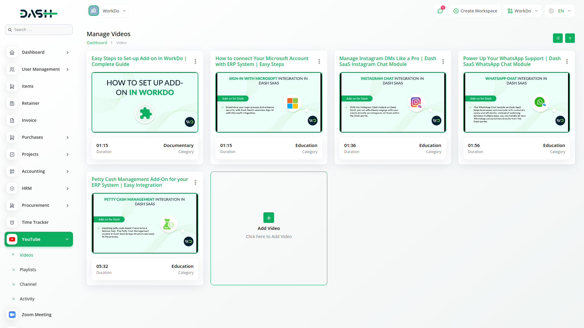 The YouTube Content Management module in Numerish streamlines channel oversight, enabling effortless video, playlist, and activity management from one centralized dashboard.